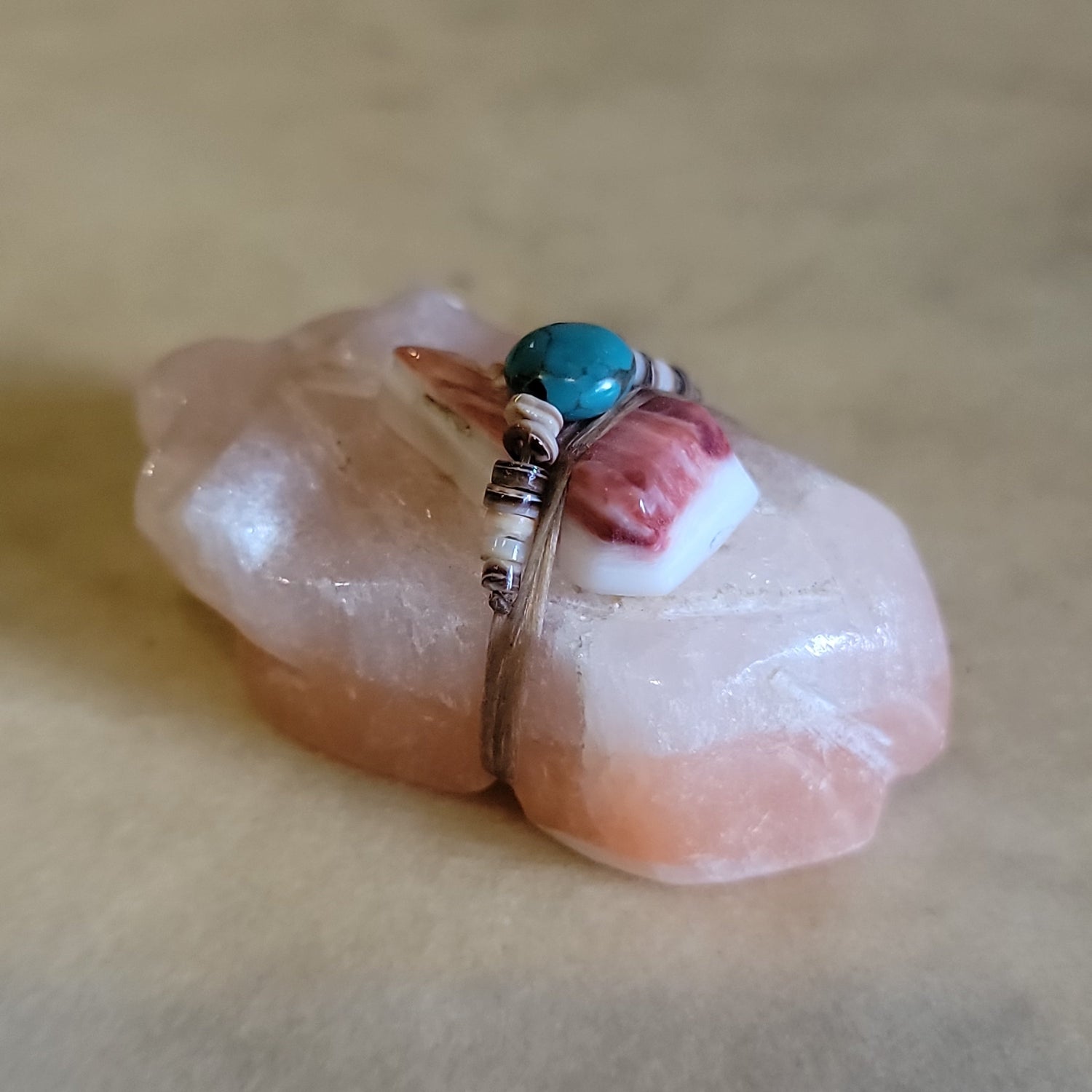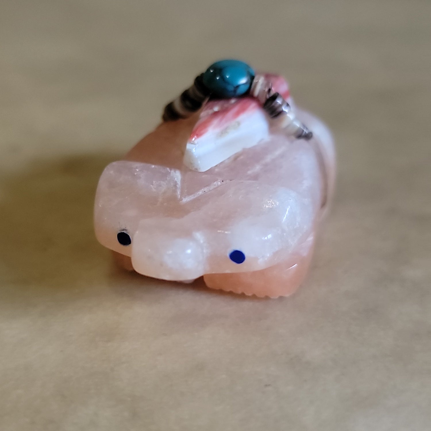 Medium: Alabaster with Lapis eyes/ Spiny Oyster shell arrowhead offering with turquoise nugget and shell heishe.