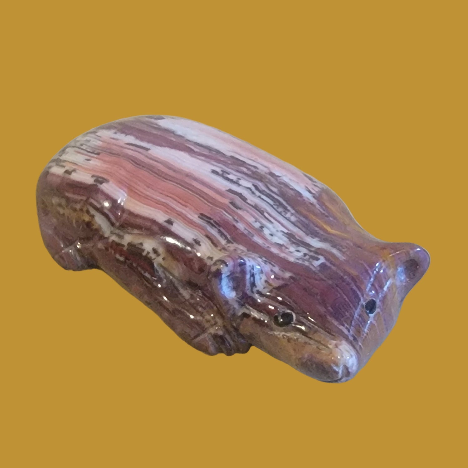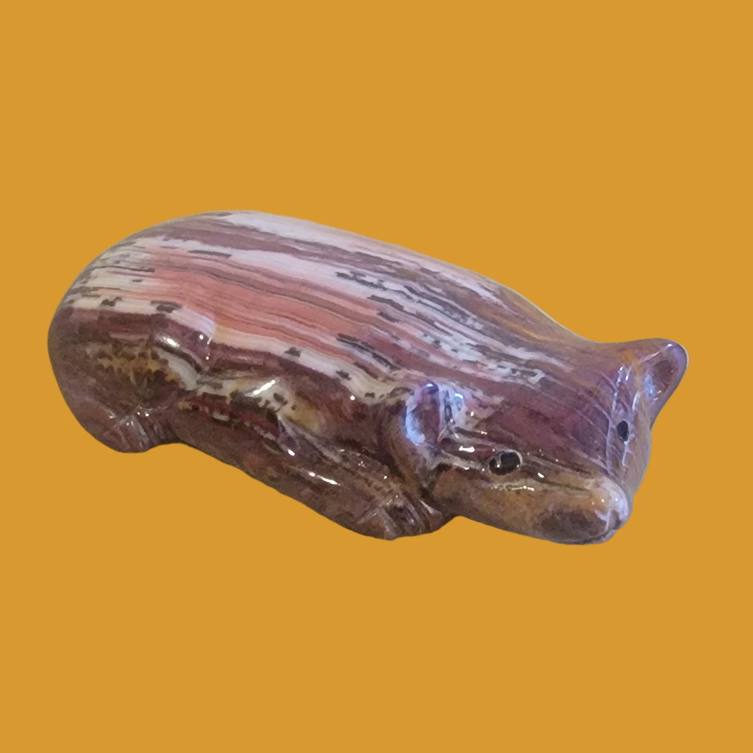 Beautiful Onyx Autumn Badger Zuni Fetish is backordered and will ship as soon as it is back in stock.