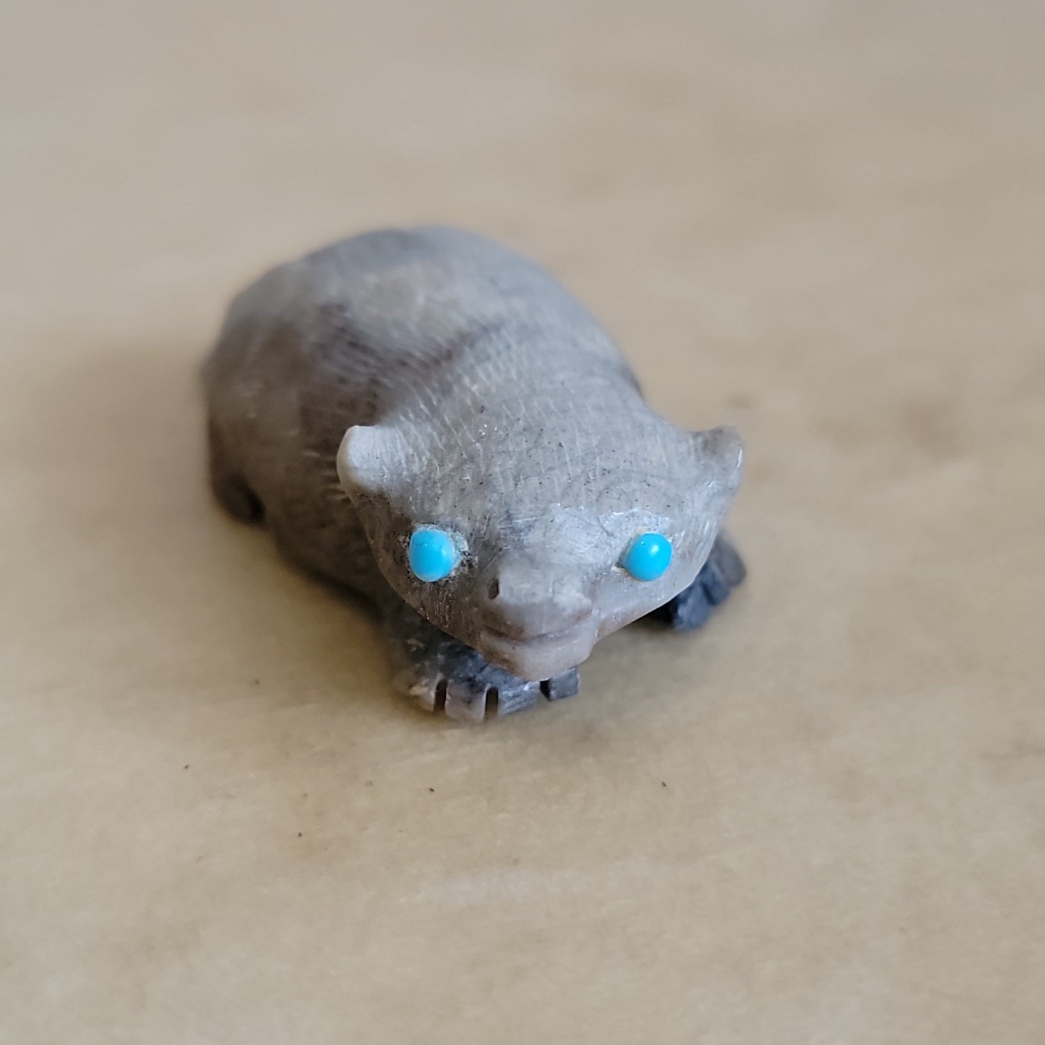 Picasso Marble Baby Badger Zuni Fetish is backordered and will ship as soon as it is back in stock.