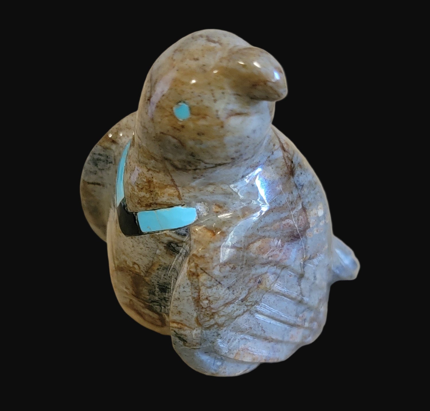 Picasso Marble Messenger Bird w/ Inlaid Necklace Zuni Fetish