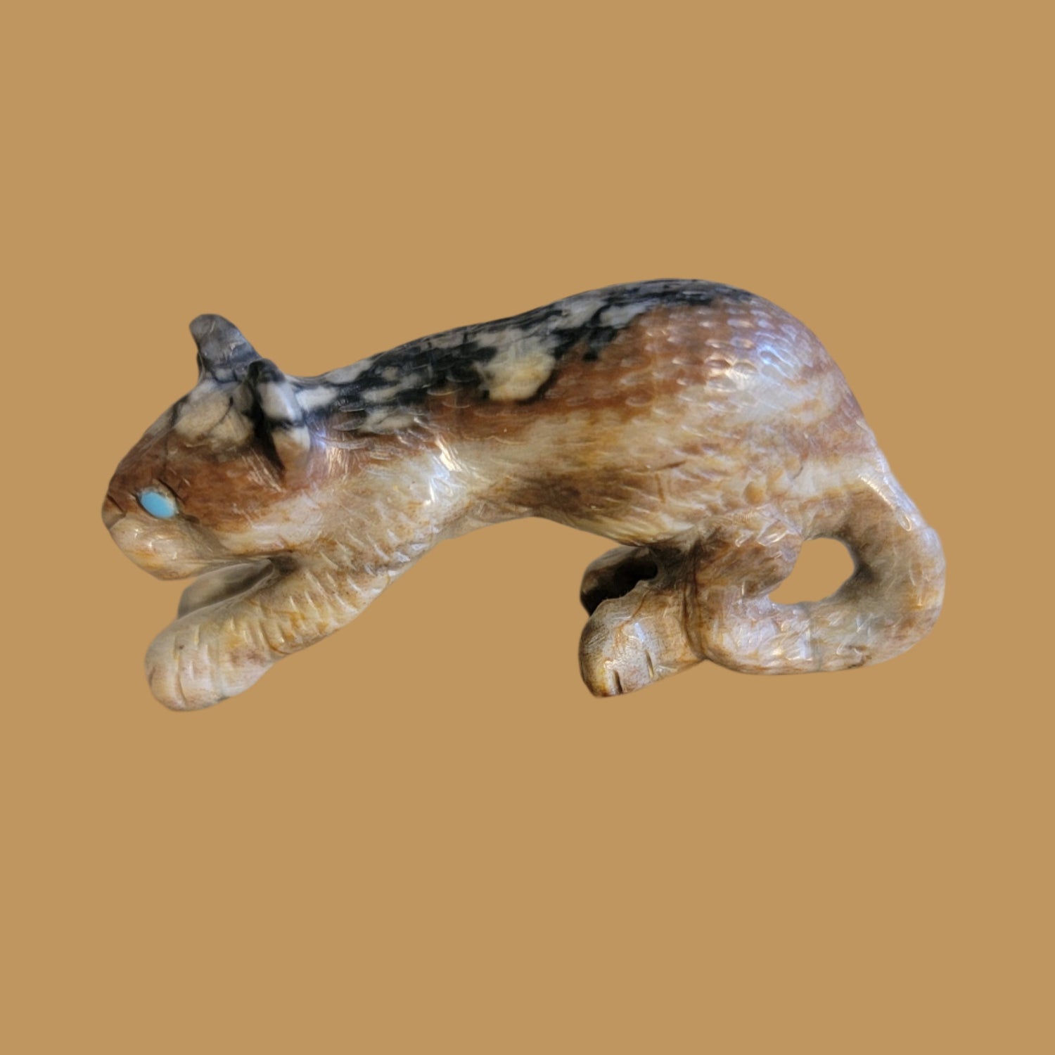Picasso Marble Arched Back Mountain Lion Zuni Fetish