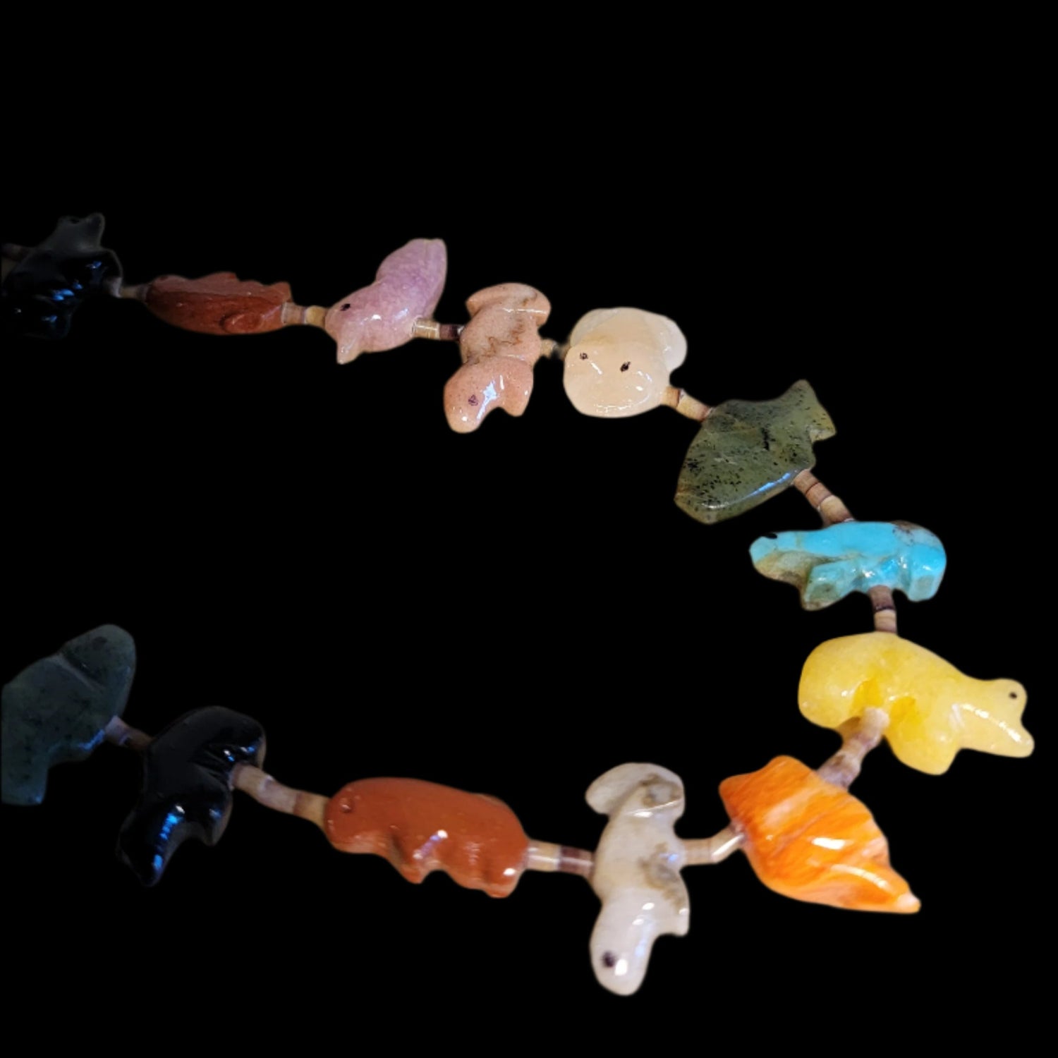 Almost Stacked Navajo Zuni Fetish Necklace w/ 33 Fetish Carvings Indian Jewelry