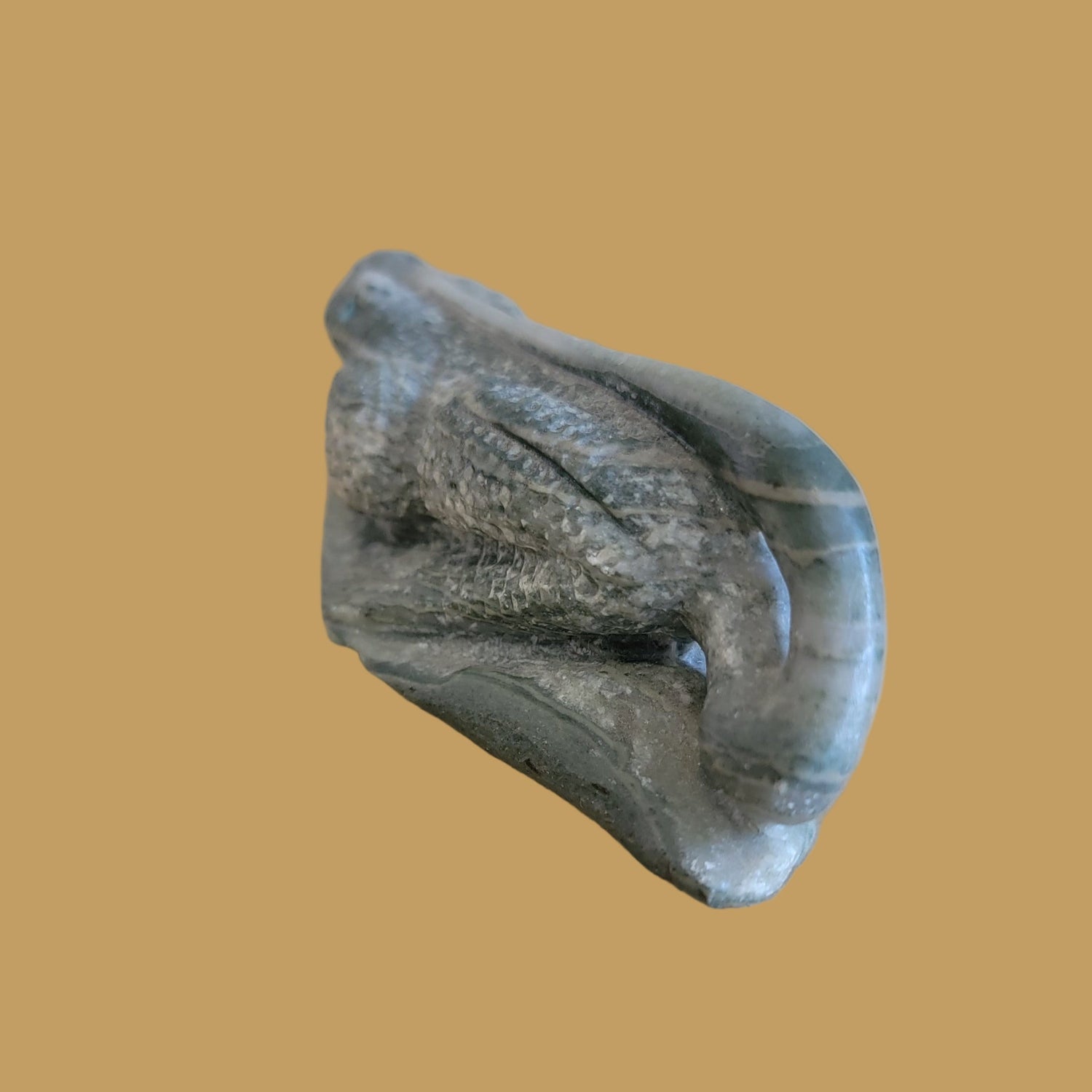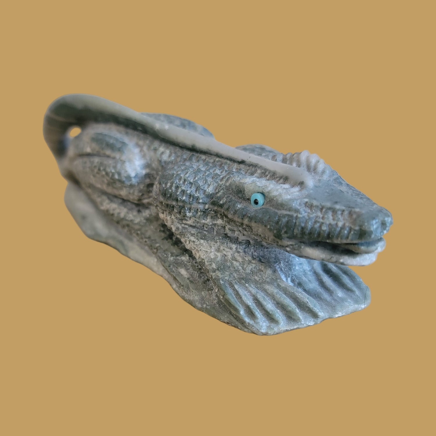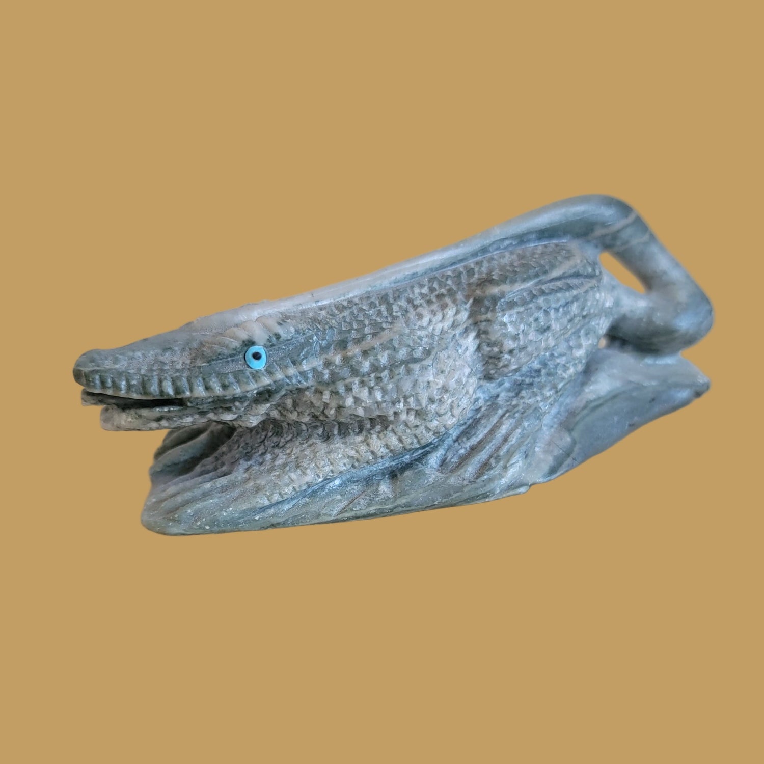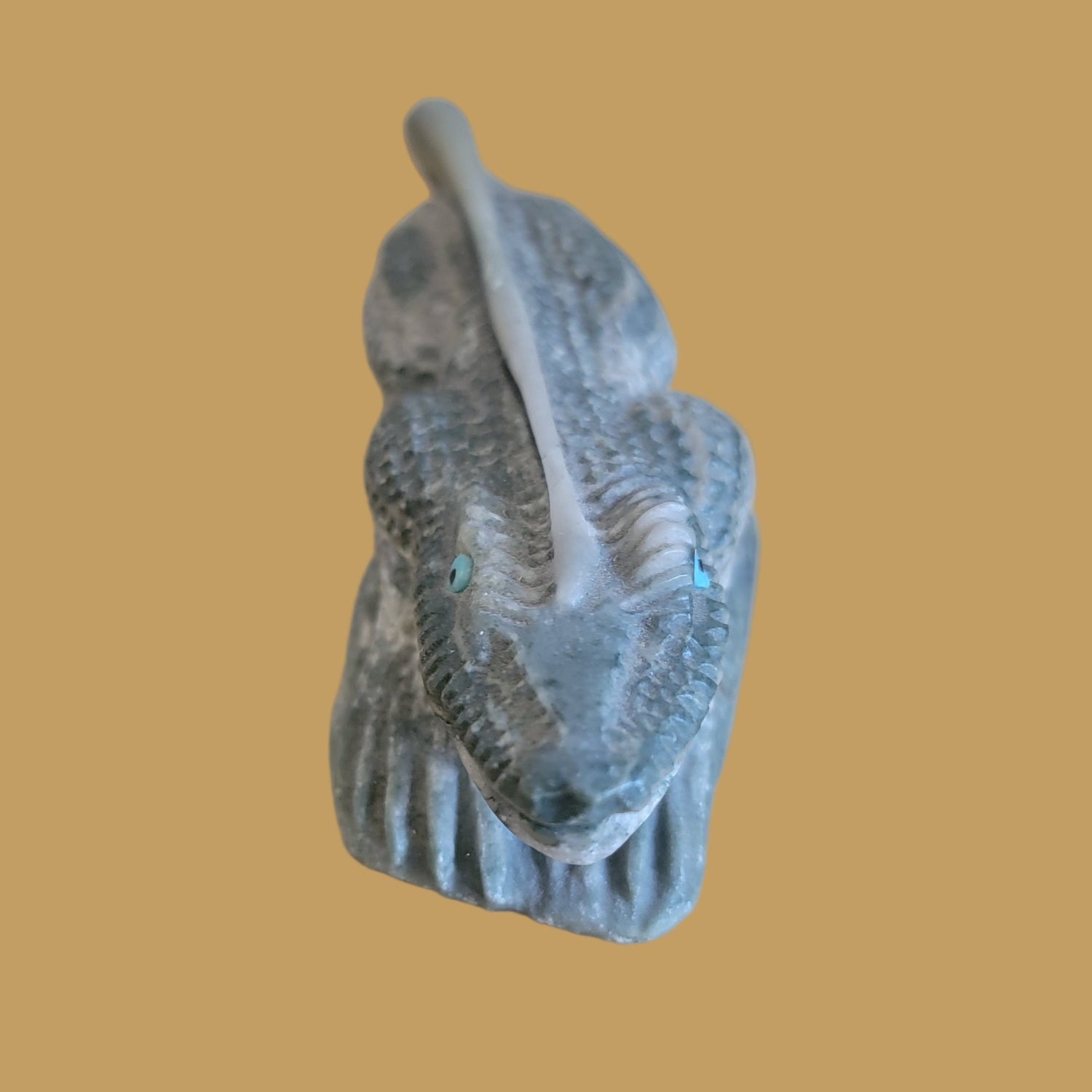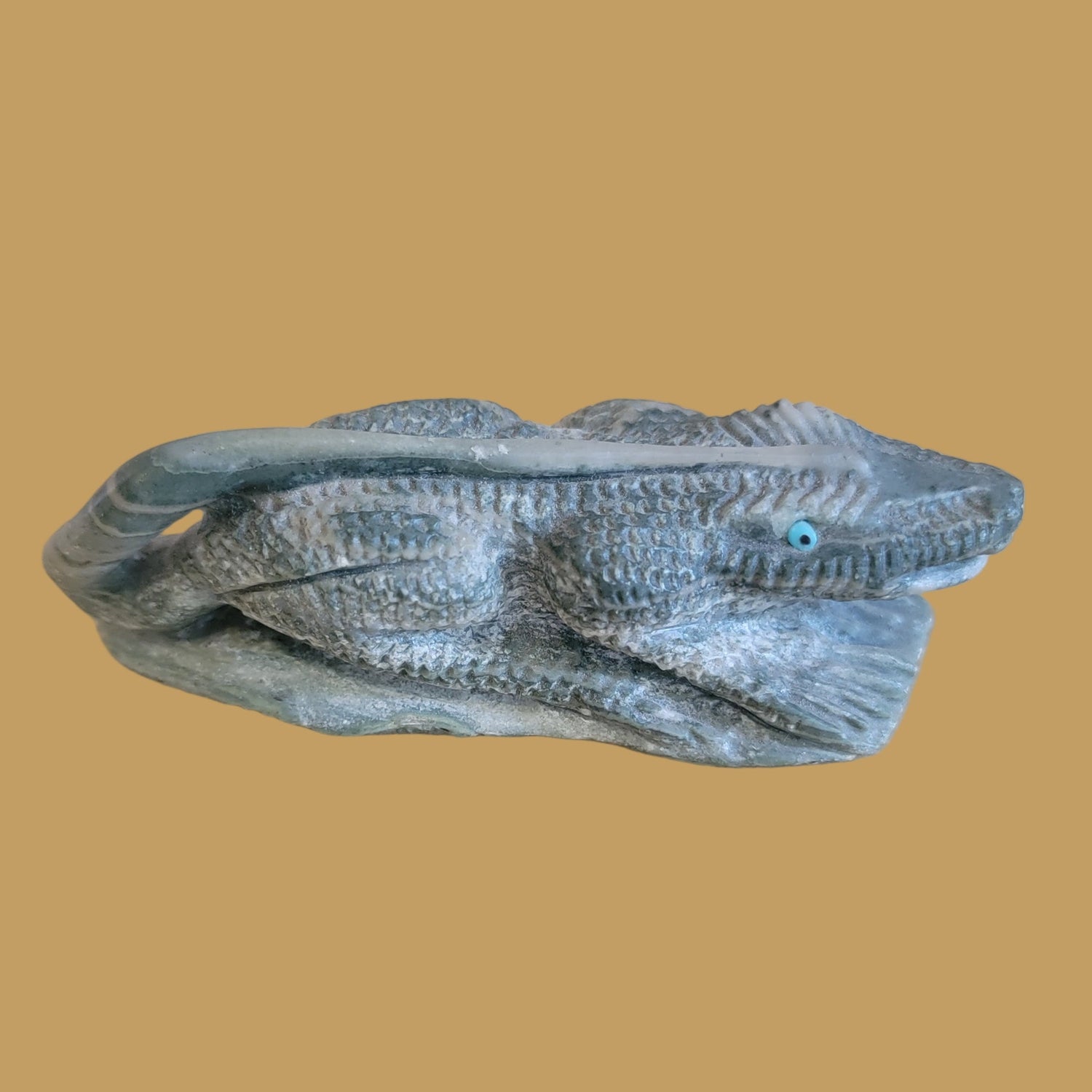 Medium:  Serpentine with turquoise and jet reptilian eyes