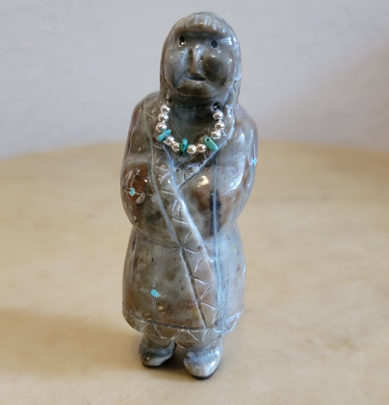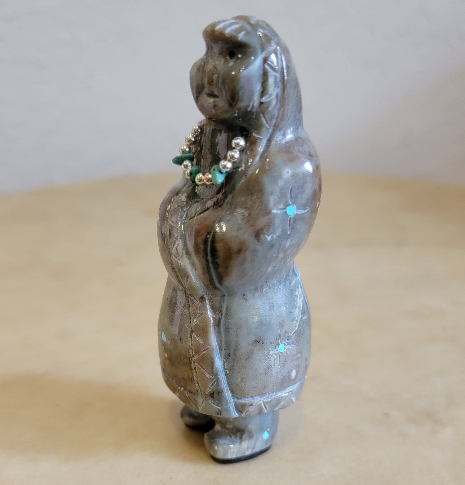 Traditional Zuni Elder Woman w/Shawl and Necklace Zuni Fetish
