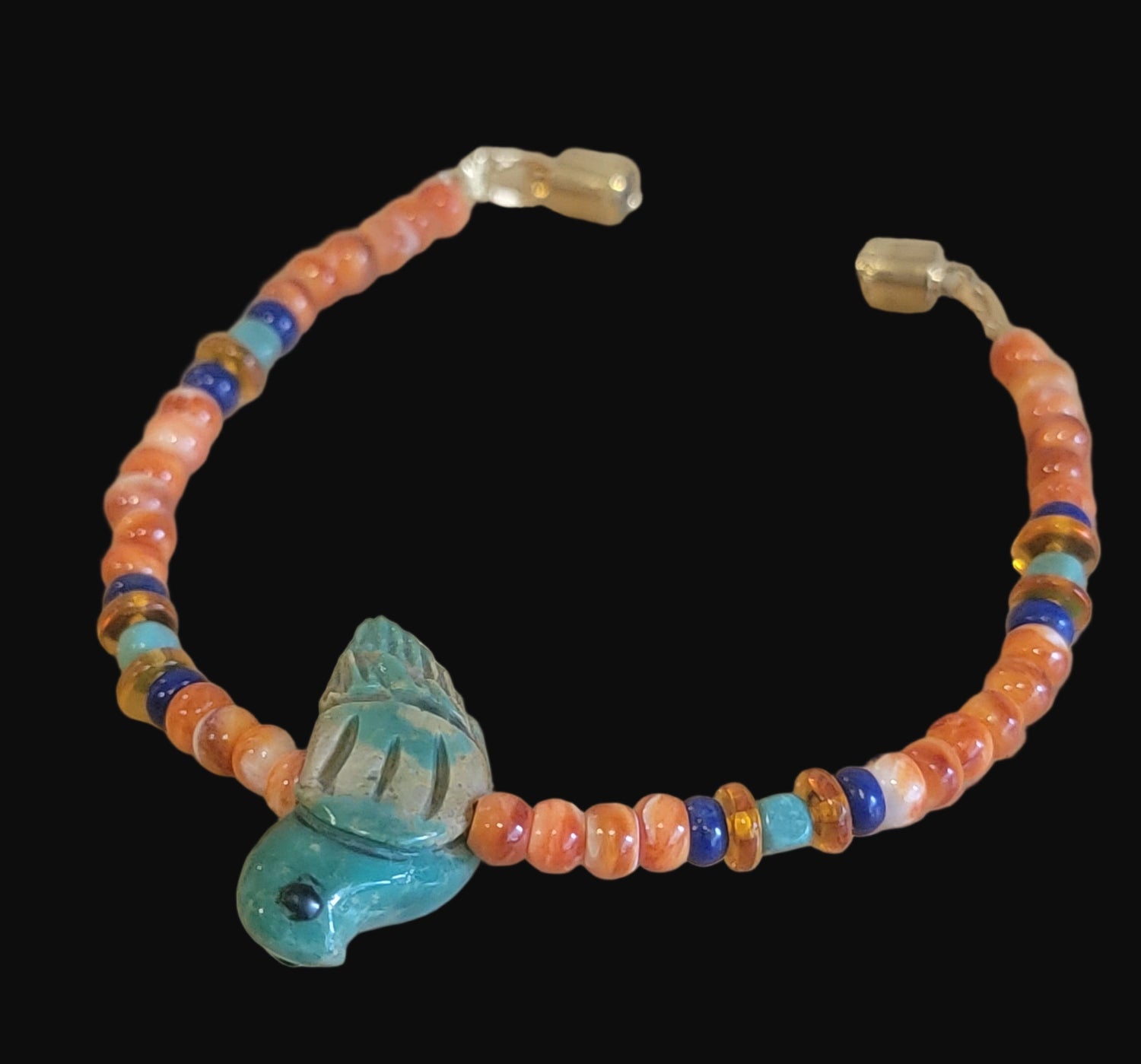 Elisa Turquoise Bird Fetish Zuni Bracelet w/ Gemstones Indian Jewelry