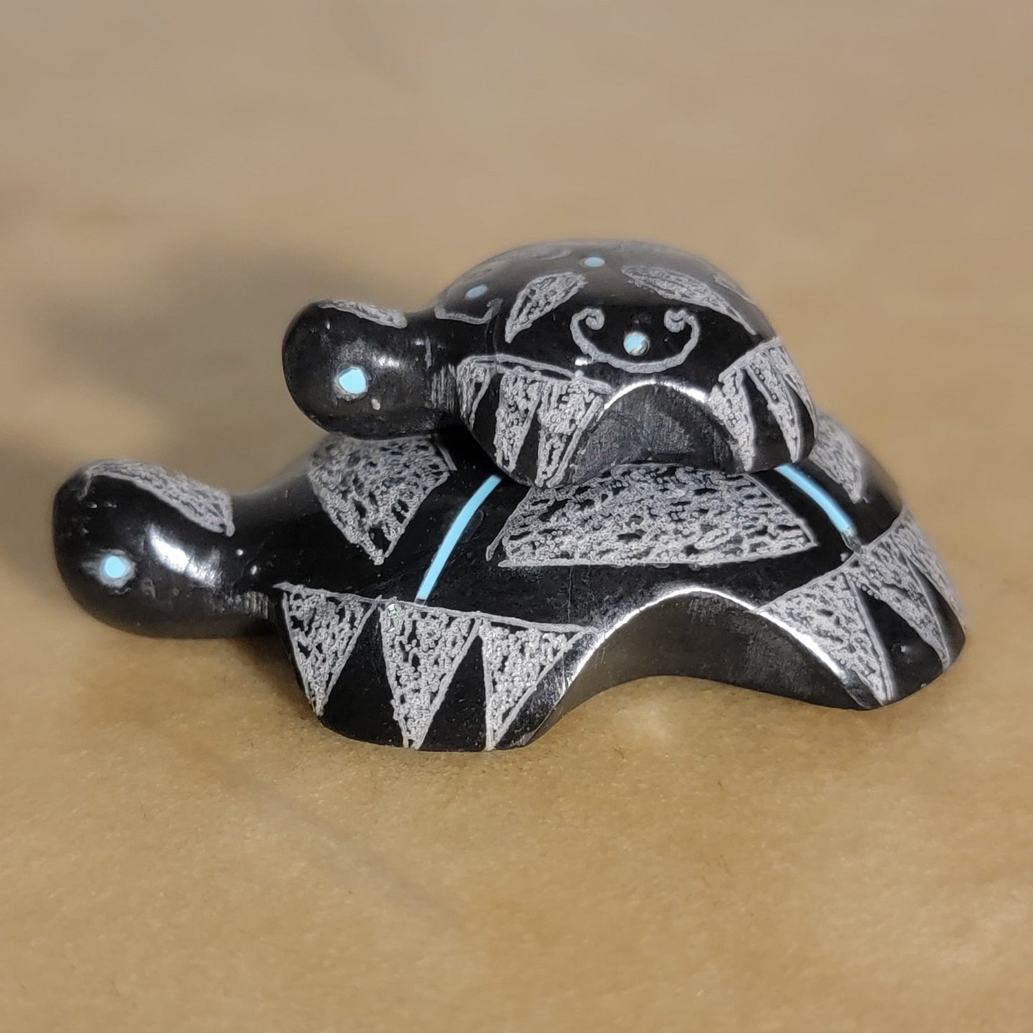 Double Stacked Highly Etched Marble Turtles Zuni Fetish