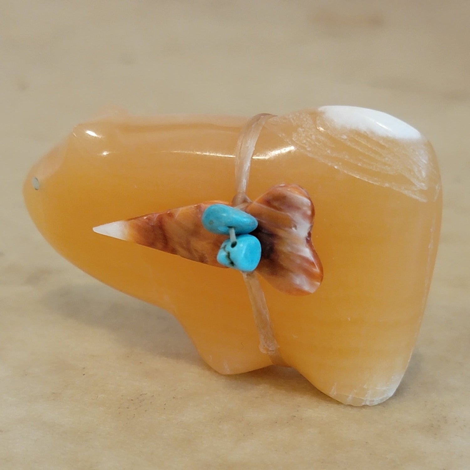 Medium: Alabaster with turquoise eyes/ Red spiny oyster shell arrowhead and turquoise nuggets side pack