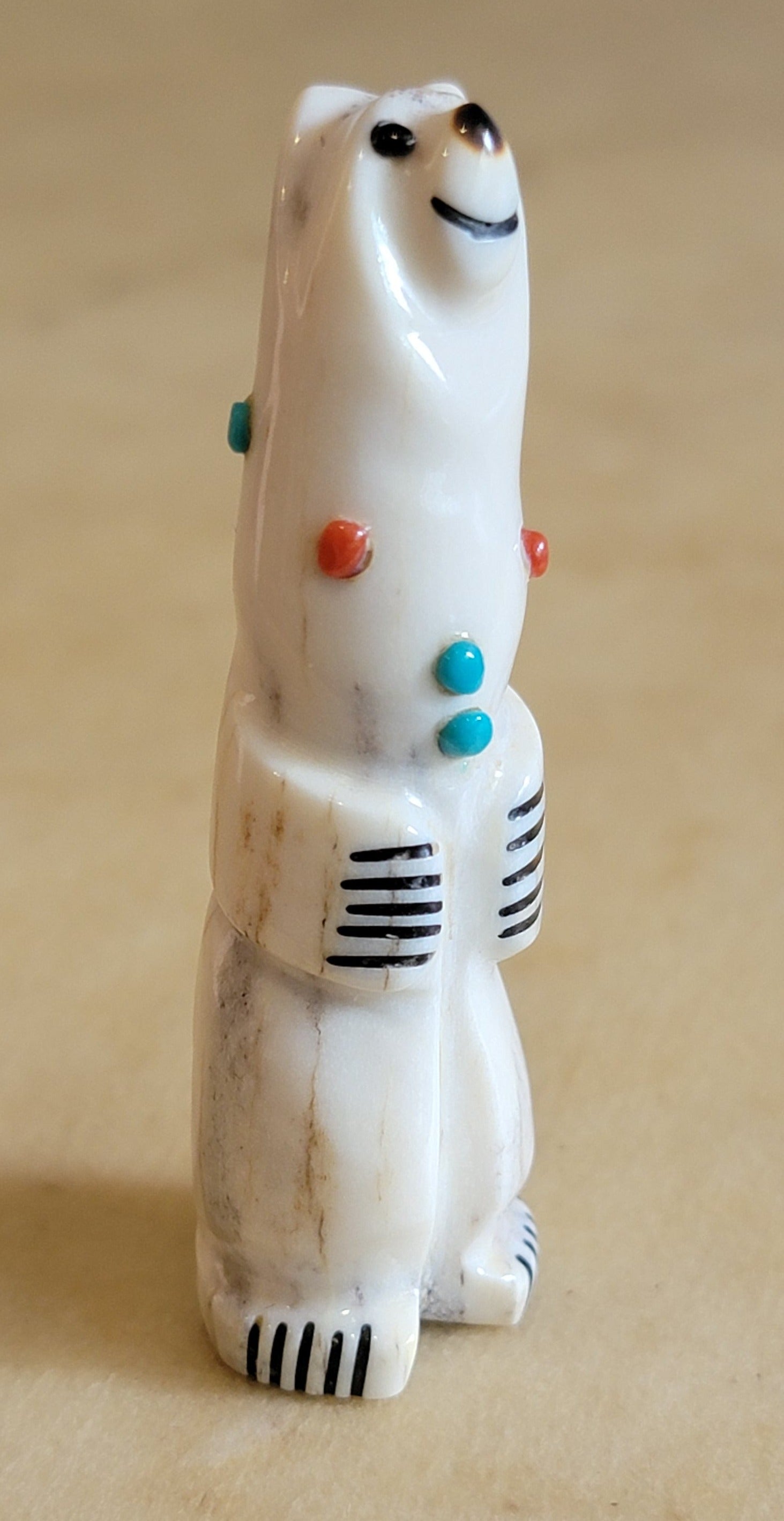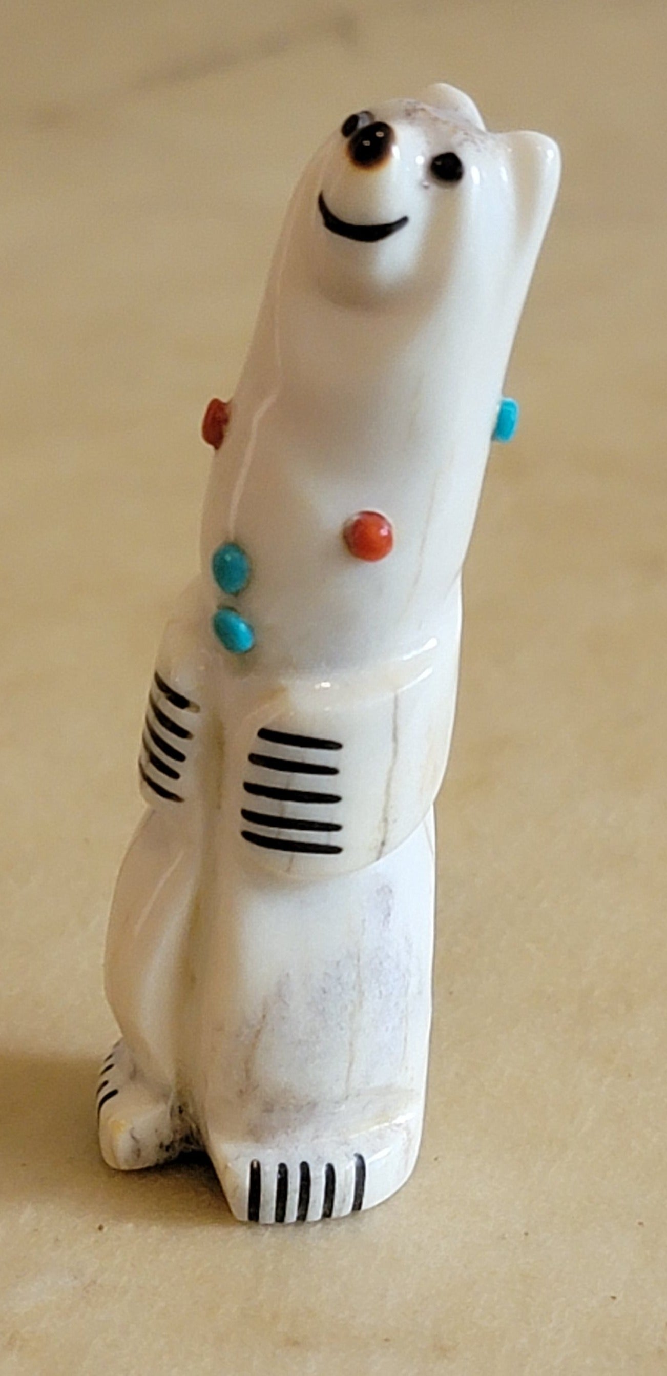 Medium: Burnished Antler / Jet mouth, eyes and paws/ turquoise and coral necklace