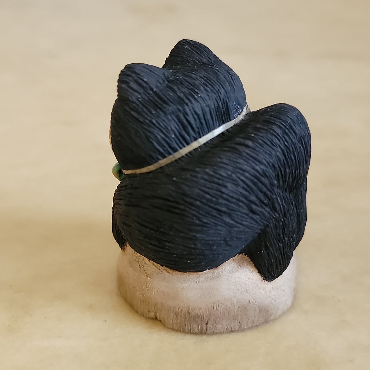 Medium: Cottonwood root wood burned/ Handpainted / Woodburned nose and mouth and fur/ Turquoise necklace nuggets pack