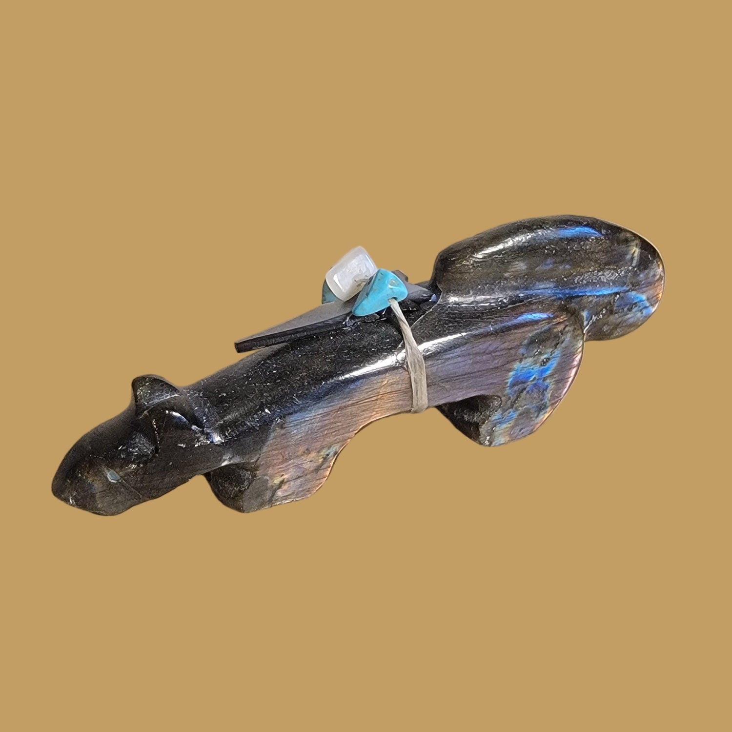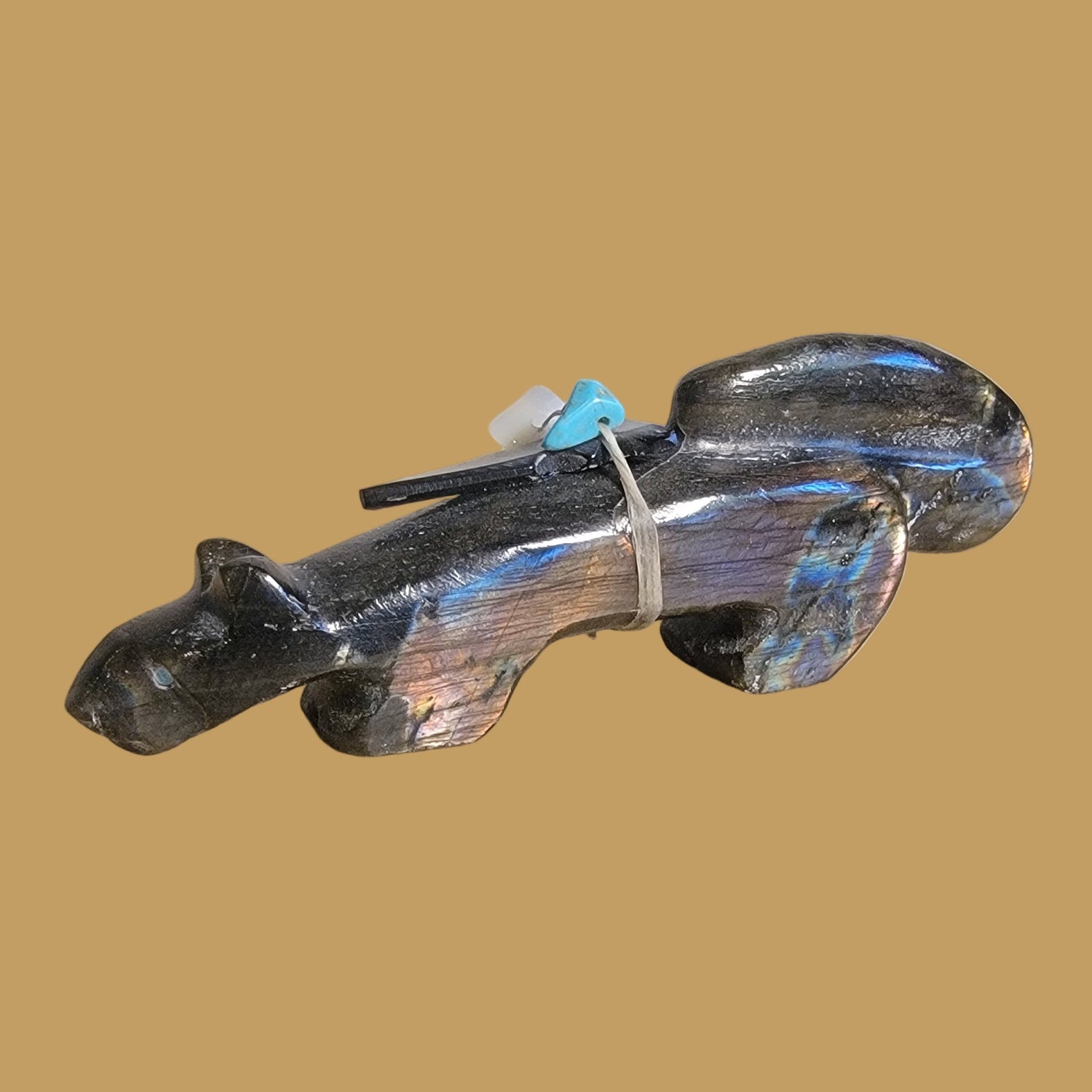 Labradorite Long and Lean Mountain Lion Zuni Fetish