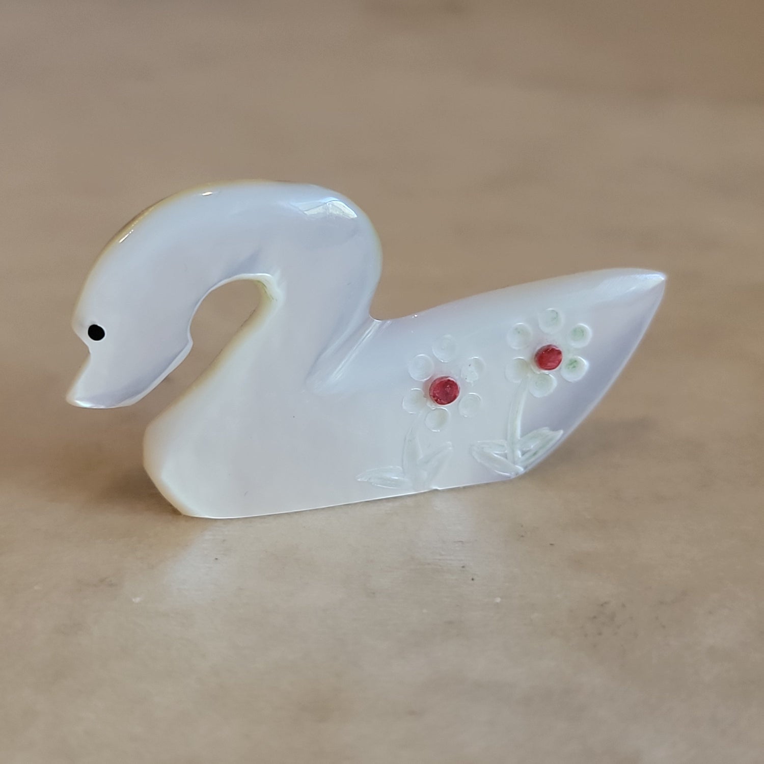 Medium:  Mother of Pearl with etched flowers and inlaid coral stones