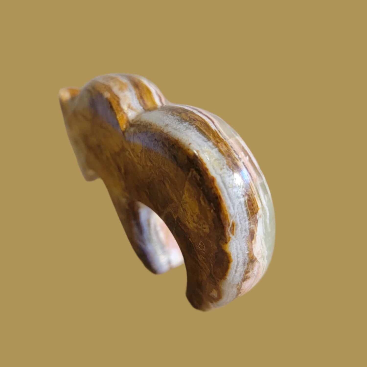 Medium:  Elegant highly polished and colorful Onyx with turquoise eyes and heartline